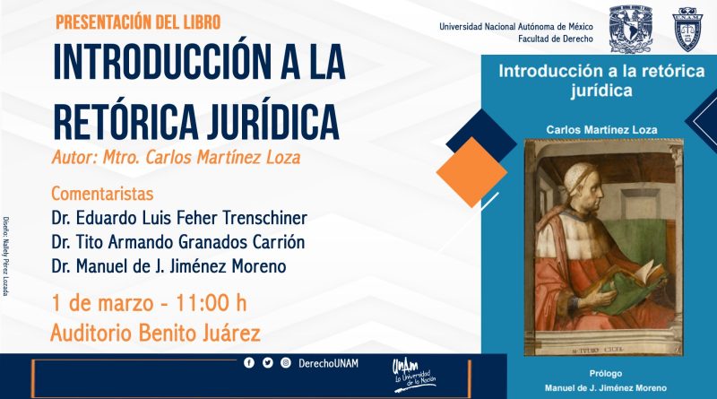 Leer más#Eventos.- Presentación del libro «Introducción a la Retórica Jurídica»Autor: Mtro. Carlos Martínez Loza Comentaristas:Dr. Eduardo Luis Feher TrenschinerDr. Tito Armando