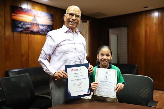 #Celaya, #Gto.- El presidente municipal de Celaya, Francisco Javier Mendoza Márquez, se reunió con Valeria Arredondo Cázares, para hacerle entrega de un merecido reconocimiento por su participación en el concurso del Parlamento de las Niñas y Niños de México 2023 del INE, con el tema del cuidado del medio ambiente.