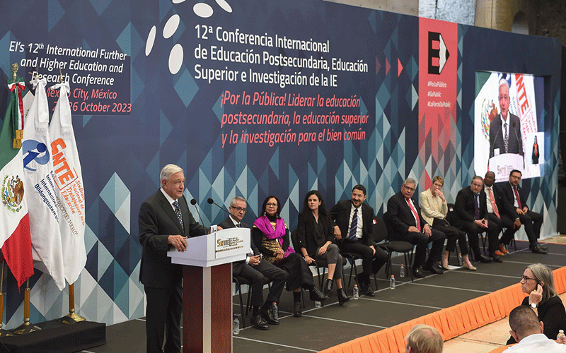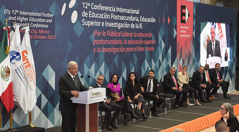 #GobiernoDeMéxico.- Al inaugurar la 12° Conferencia Internacional de Educación Postsecundaria, Educación Superior e Investigación, el presidente Andrés Manuel López Obrador resaltó las acciones del Gobierno de México en el sector educativo y precisó que se enmarcan en cuatro áreas: mejoras a las condiciones laborales de las y los maestros, así como aumentos salariales; rehabilitación de infraestructura escolar y, finalmente, la entrega histórica de becas a estudiantes de familias pobres.